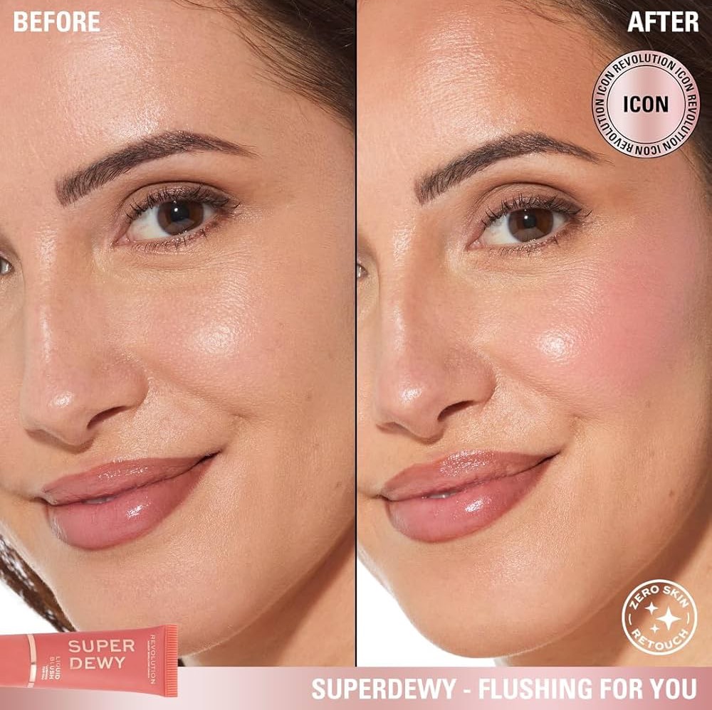 أضف تلميحا من الصبغة إلى مظهرك مع مجموعة Revolution Superdewy Liquid Blush. أحمر خدود سائل سهل الاستخدام ومصبغ للغاية وقابل للبناء. اذهب للحصول على لمسة نهائية طبيعية أو قم ببنائها للحصول على مظهر أكثر تصبغا.